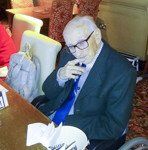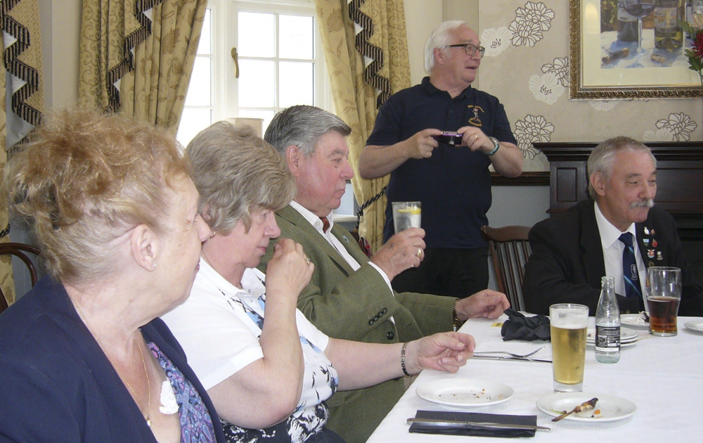 That last time we all got together was at our Christmas Lunch in December 2019. So it was with great pleasure that we were able to have another luncheon gathering after the all the restrictions and lockdowns because of covid19. We once again gathered at the Woodcocks Hotel, Burton Waters, next to the Fossdyke Canal to enjoy a convivial meal and lots and lots of catching up chatter. Our guest of honour was Harry Archer, a D-Day Veteran and ex-Corps member, whom some members of the branch attended his investiture as a Chevalier of the Ordre national de la Légion d'honneur, in January 2020. See here. And after the lunch our President Mjr (retd) Derek Wood presented Harry with a copy of the Corps Centenary book, "Roger So Far". |